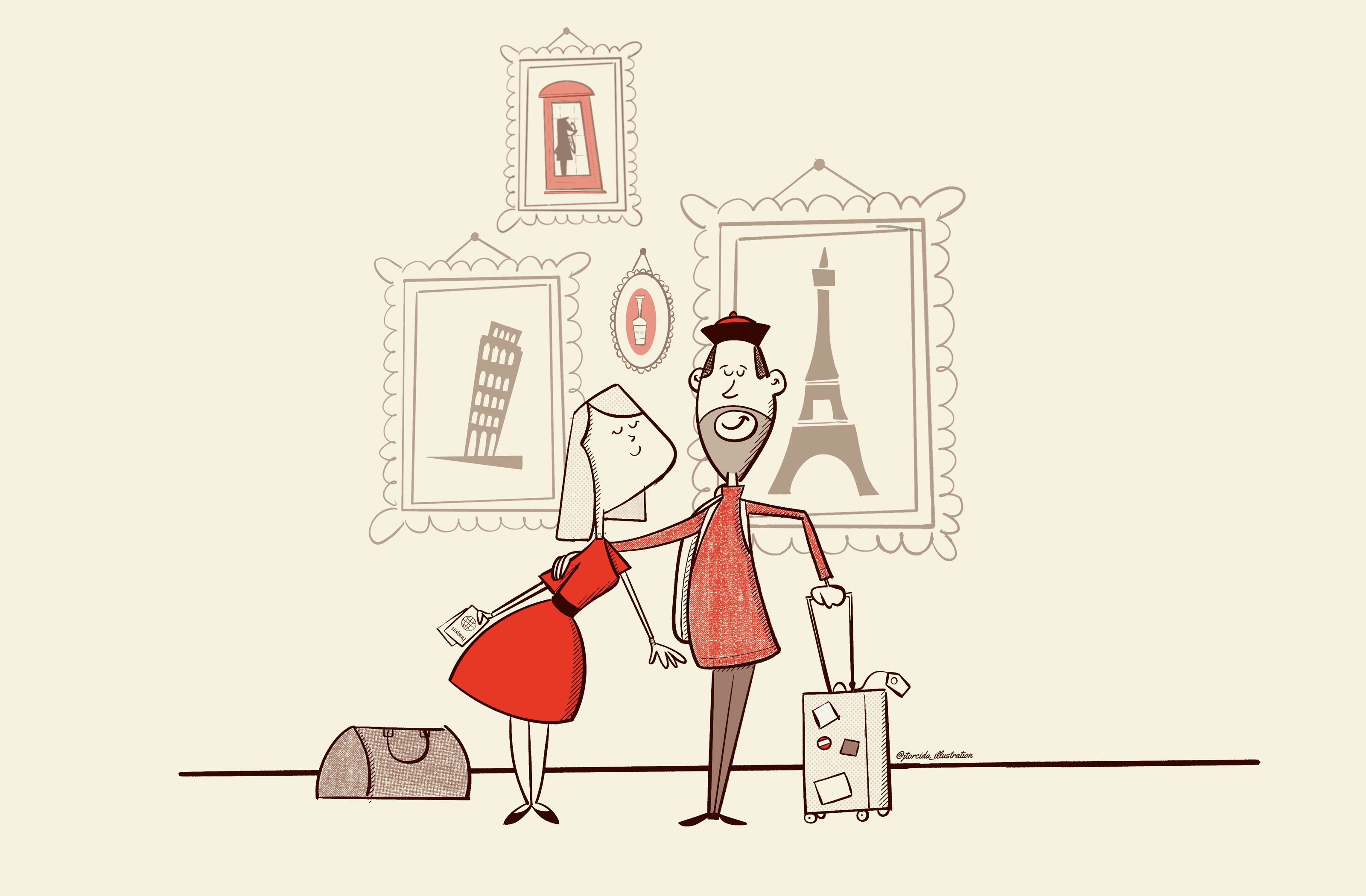Una ilustración personalizada para una pareja a punto de comenzar su mayor viaje juntos. Una pieza pensada para capturar su pasión por descubrir el mundo, donde cada detalle acompaña una historia que no deja de avanzar.